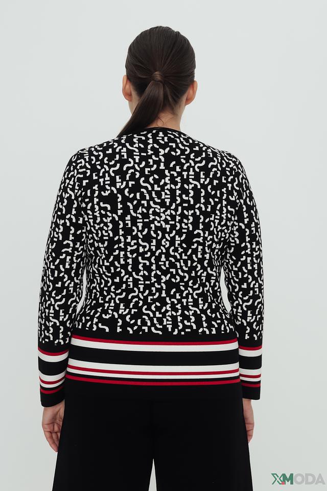 Чёрный пуловер от Rabe collection с оригинальным принтом и контрастной отделкой. Модель выполнена из мягкого и приятного к телу сочетания вискозы и полиэстера, обеспечивающего комфорт в носке. Состав: вискоза 72%, полиэстер 28%