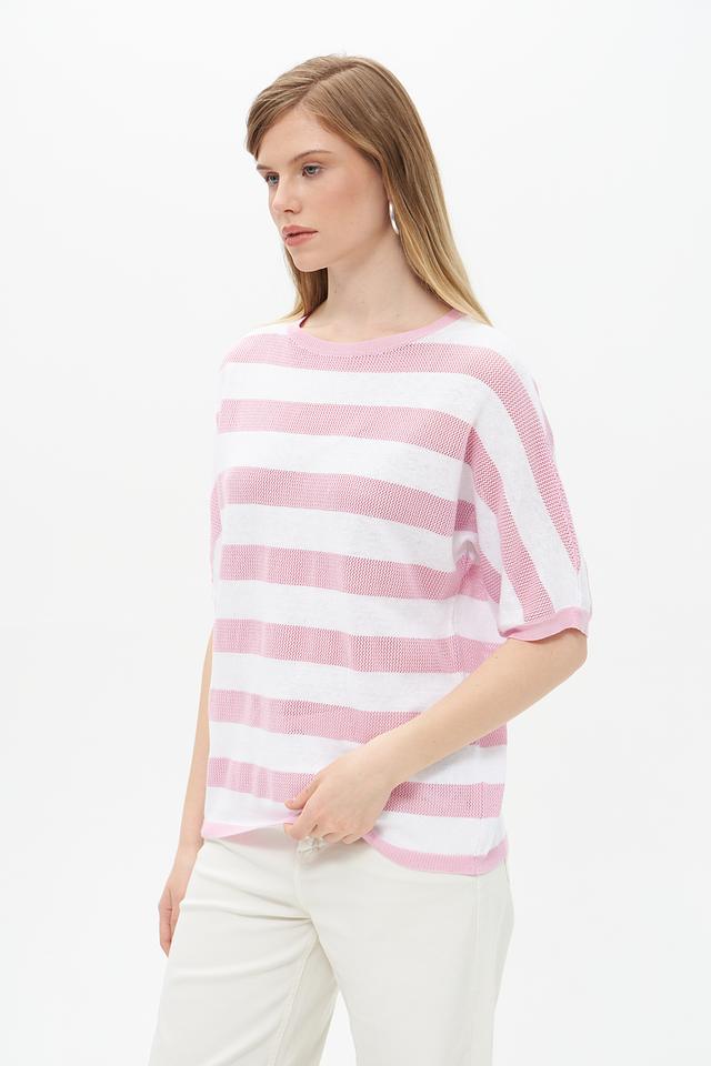 Женский пуловер Rabe collection нежно-розового цвета с белой полоской — стильное и комфортное решение для создания повседневного образа. Изготовлен из мягкого хлопкового трикотажа с добавлением полиакрила. Состав: хлопок 50%, полиакрил 50%