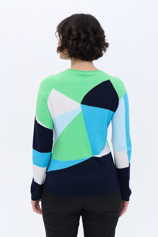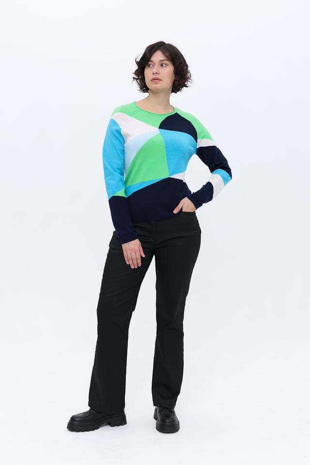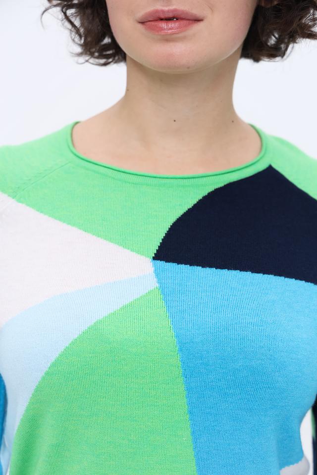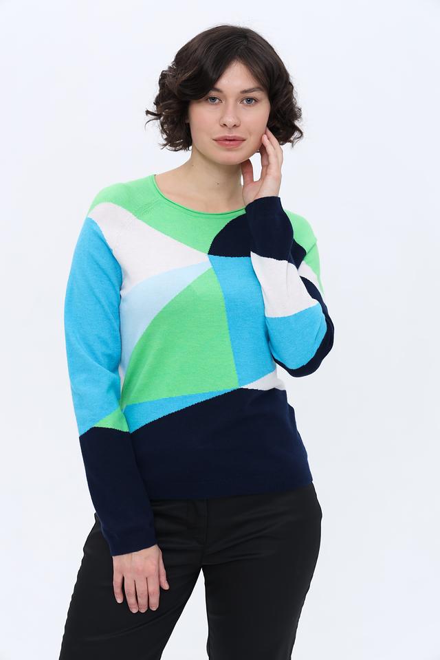 Женский пуловер Rabe collection бирюзового цвета с ярким геометрическим принтом станет стильным дополнением к вашему гардеробу. Модель выполнена из мягкого трикотажа, обеспечивающего комфорт в носке. Состав: полиэстер 50%, вискоза 30%, полиамид 20%
