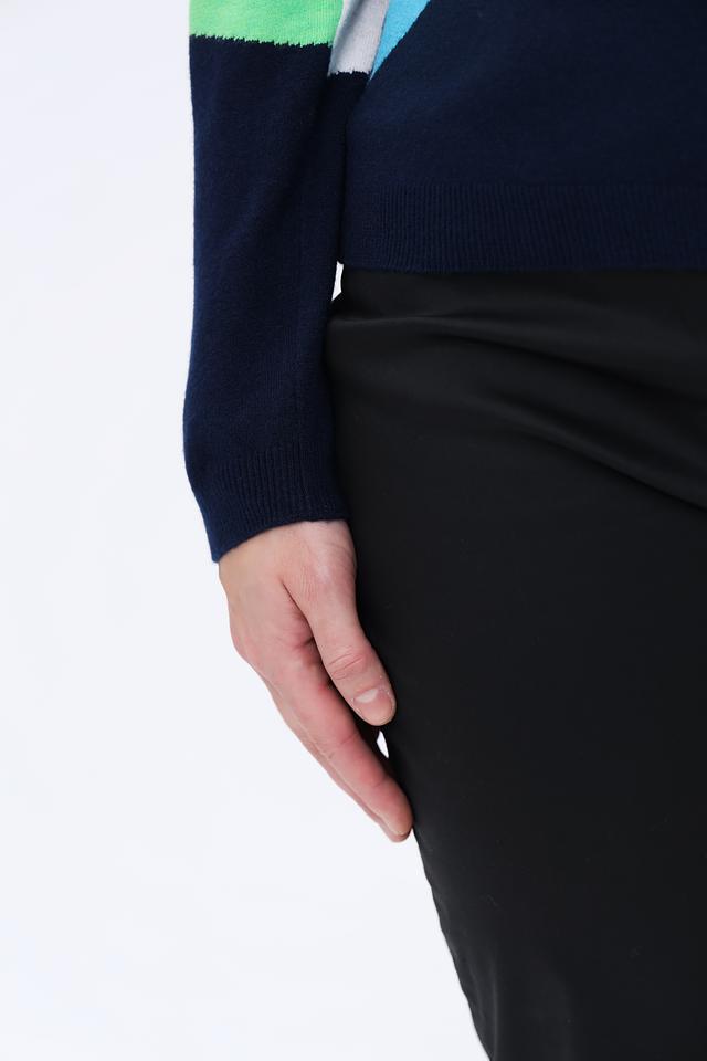 Этот стильный пуловер от Rabe collection выполнен в яркой цветовой гамме с геометрическим принтом. Преобладающий цвет – бирюзовый, который гармонично сочетается с белым, светло-голубым и тёмно-синим. Пуловер имеет круглый вырез горловины и длинные рукава.
