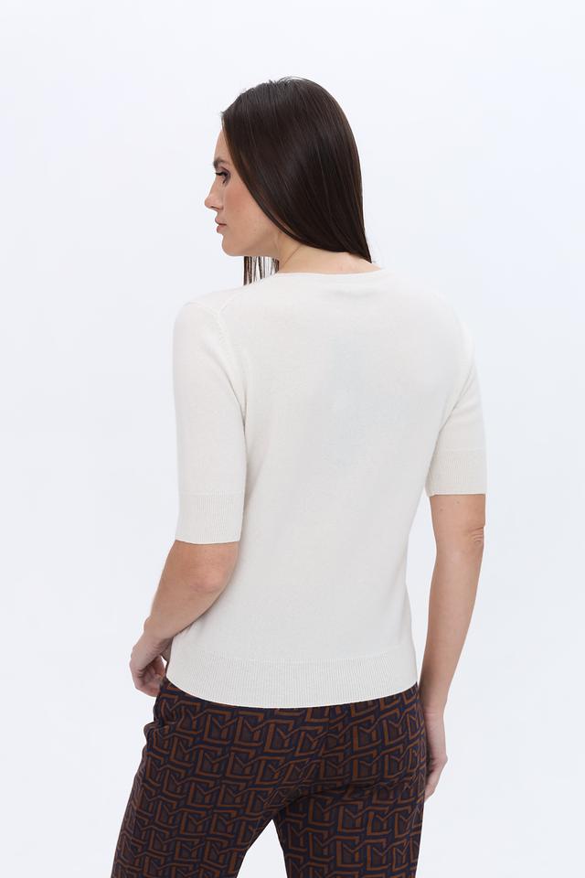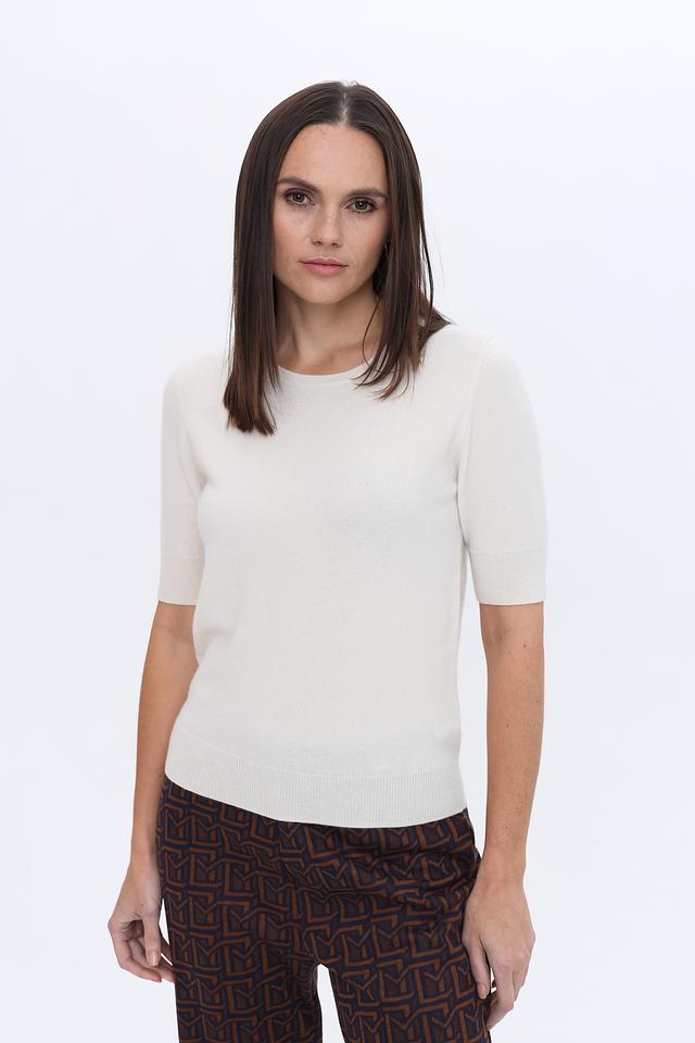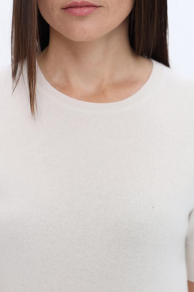 Пуловер имеет классический крой с короткими рукавами и округлым вырезом горловины. Он идеально подходит для создания как повседневных, так и более изысканных образов. Благодаря высококачественному кашемиру, пуловер приятен к телу и не вызывает раздражения.