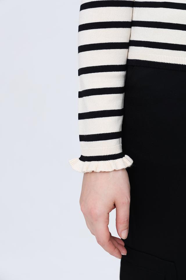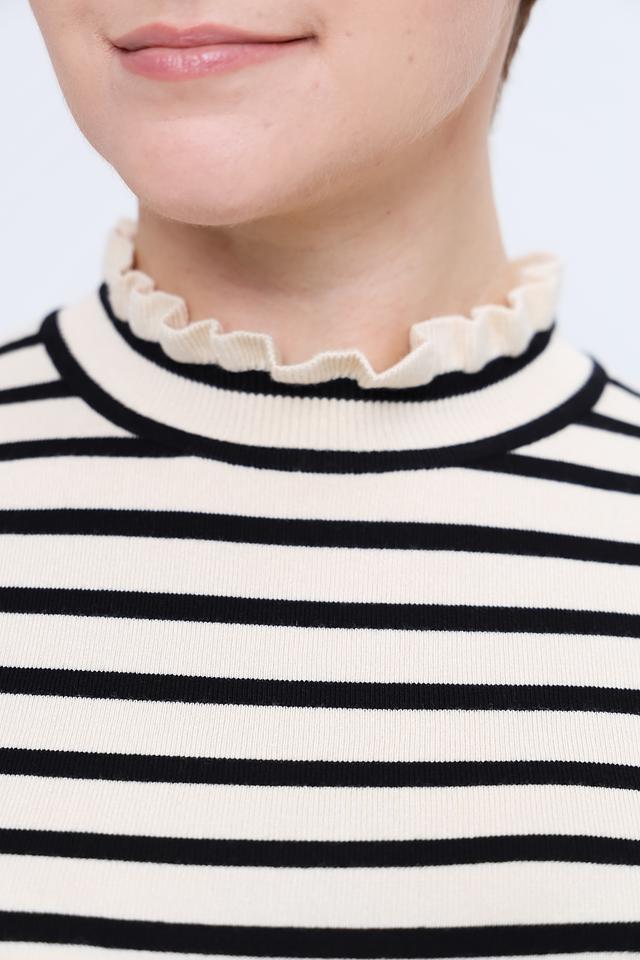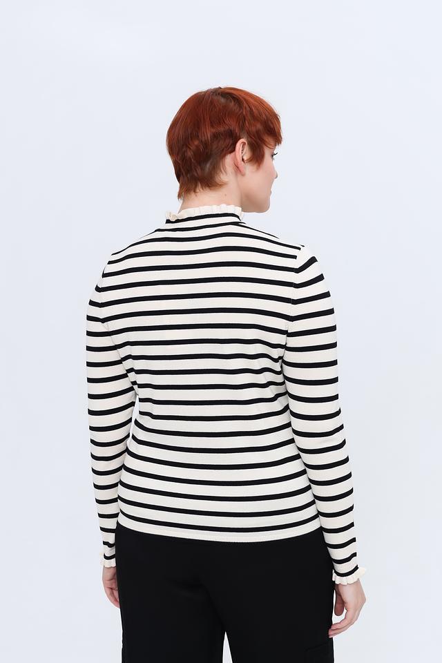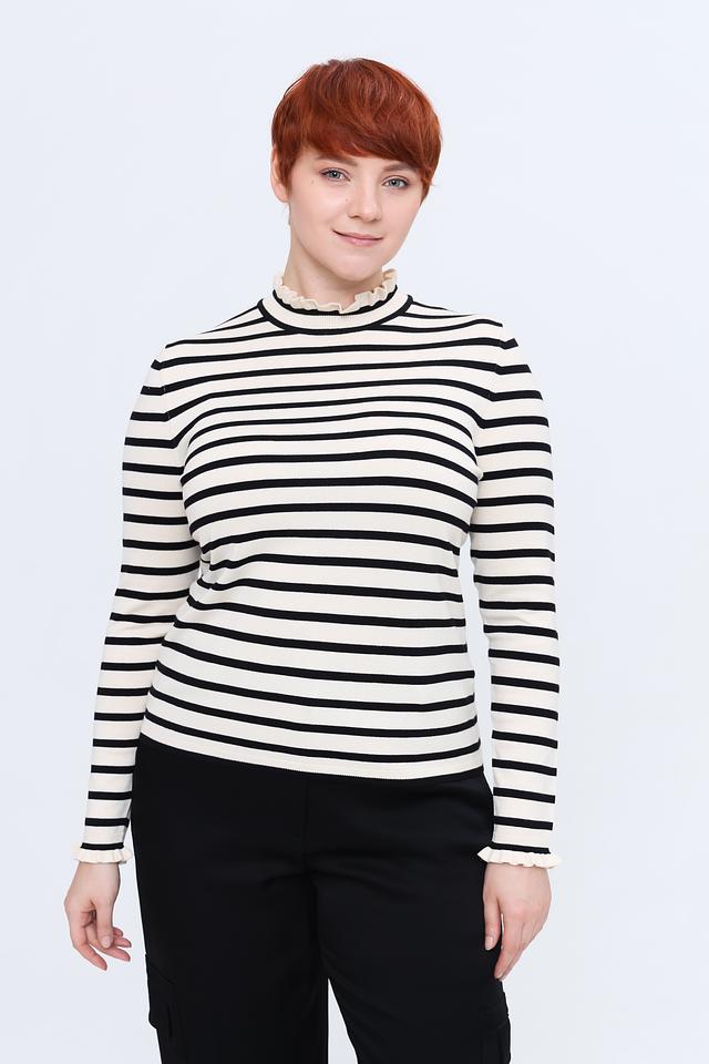 Женский пуловер Taifun чёрно-белого цвета с полоской и воротником-стойкой. Модель выполнена из мягкой вискозы с добавлением полиамида, что обеспечивает комфорт и износостойкость. Состав: вискоза 80%, полиамид 20%