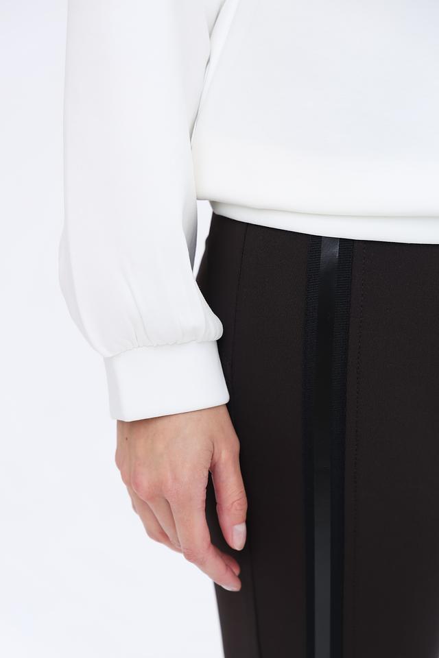 Модель украшена вышитым логотипом бренда на груди, что придает ей особый стиль. Пуловер имеет круглый вырез горловины и длинные рукава с манжетами.