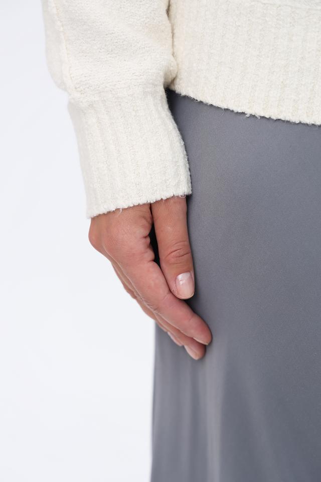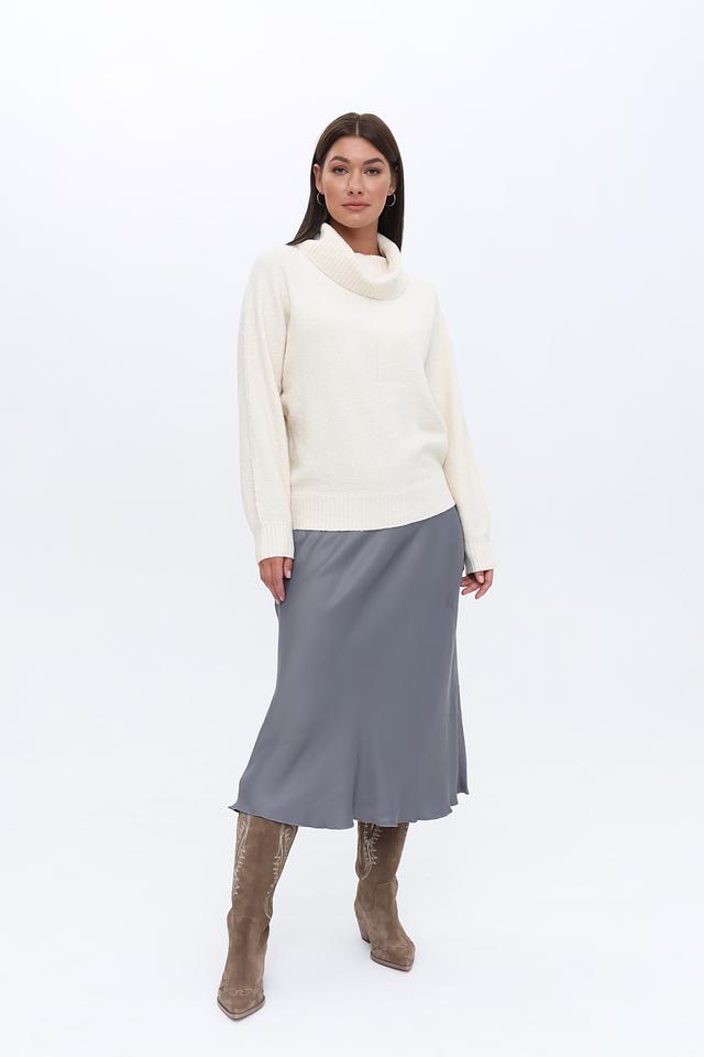 Модель имеет высокий горловину, которая не только согревает в прохладную погоду, но и придает образу элегантность. Свободный крой обеспечивает комфорт и свободу движений, а слегка спущенная линия плеч добавляет непринужденности.