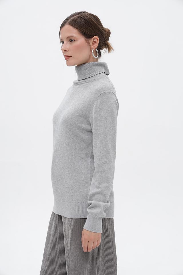 Модель имеет классический крой с высоким горлом, который обеспечивает комфорт и защиту от холода. Пуловер изготовлен из качественного материала, сочетающего в себе 60% хлопка и 40% вискозы, что делает его приятным на ощупь и удобным в носке.