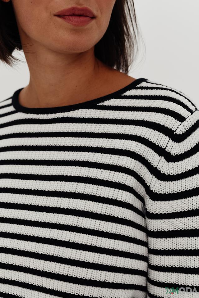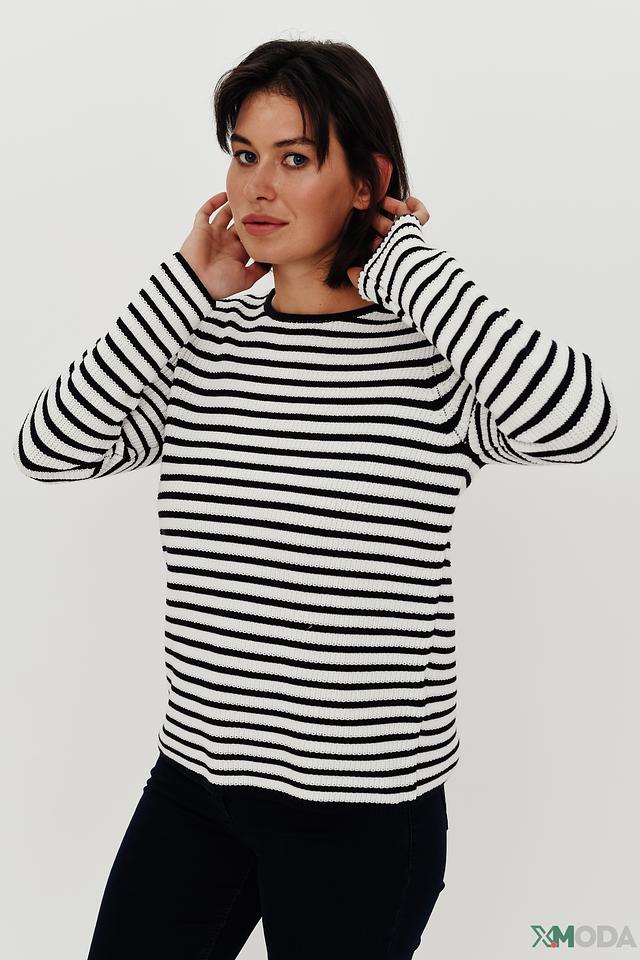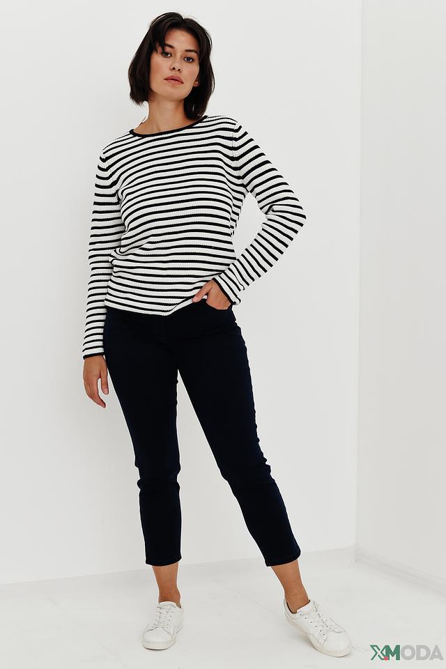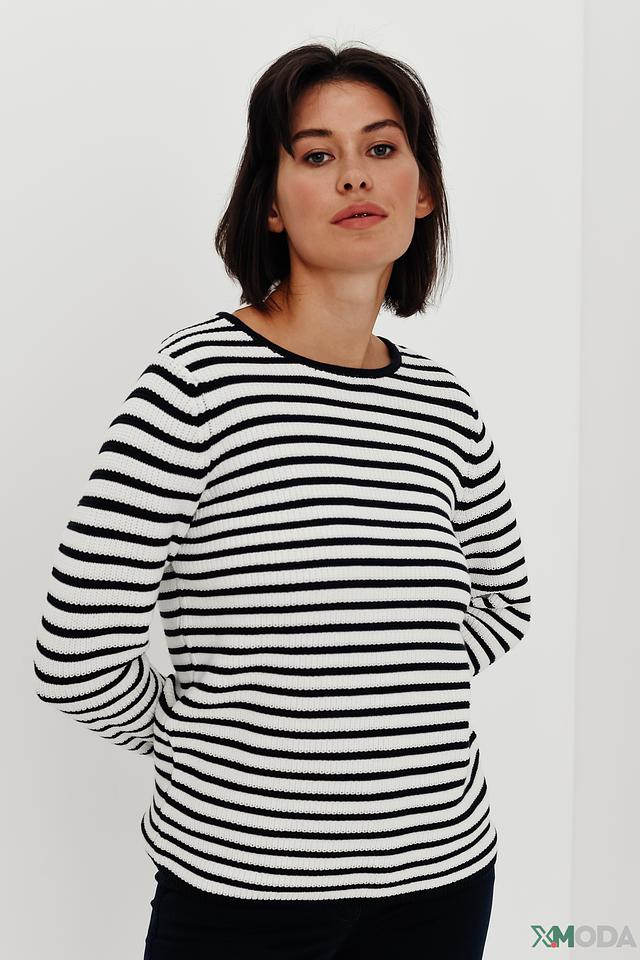 Женский пуловер Gerry Weber классического кроя, выполнен из мягкого хлопка в бело-синюю полоску. Модель с длинными рукавами и круглым вырезом станет отличным дополнением к вашему гардеробу. Состав: хлопок органич. 100%