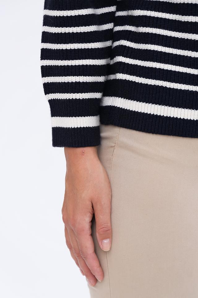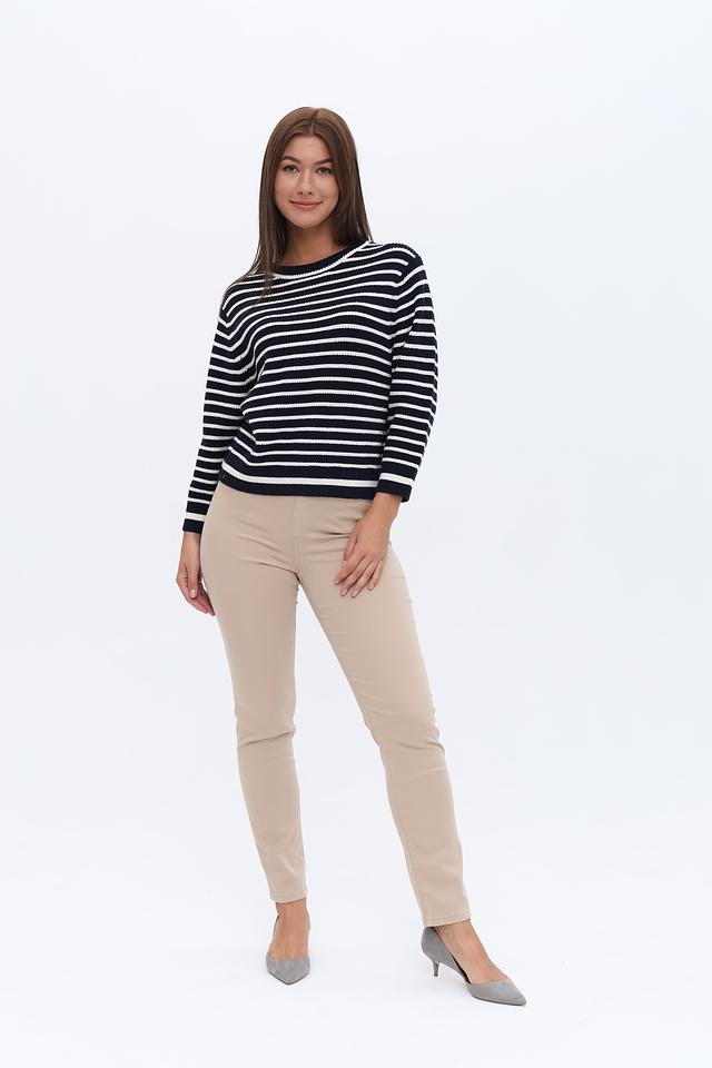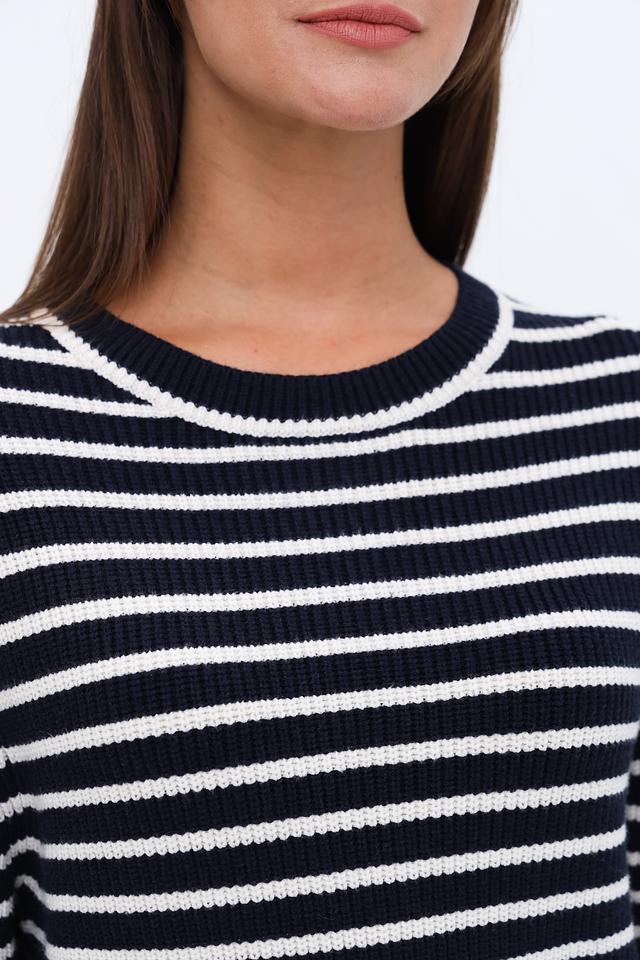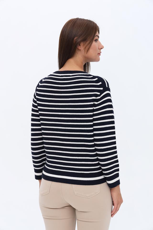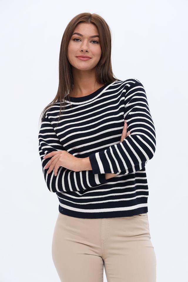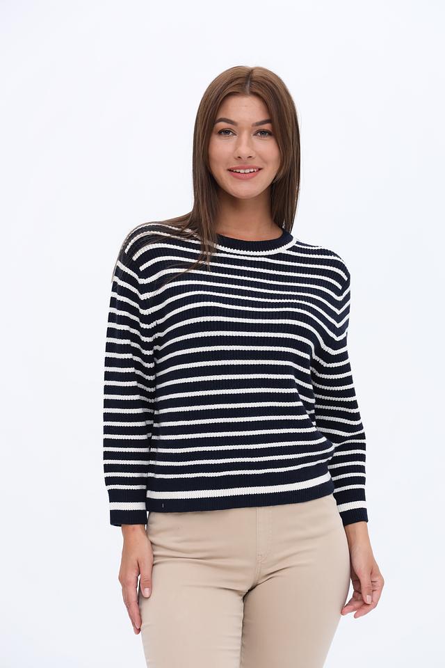 Женский пуловер Oui темно-синего и белого цвета в классическую полоску. Модель выполнена из мягкого трикотажа с добавлением вискозы, полиэстера и полиамида для комфорта и долговечности. Состав: вискоза 50%, полиэстер 28%, полиамид 22%