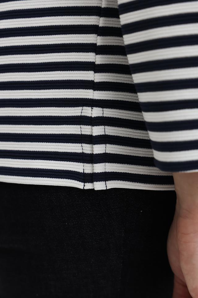 Этот стильный пуловер от Via Appia станет отличным дополнением к вашему гардеробу. Пуловер выполнен в классическую чёрно-белую полоску, что делает его универсальным и легко сочетаемым с другими вещами.