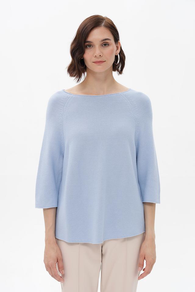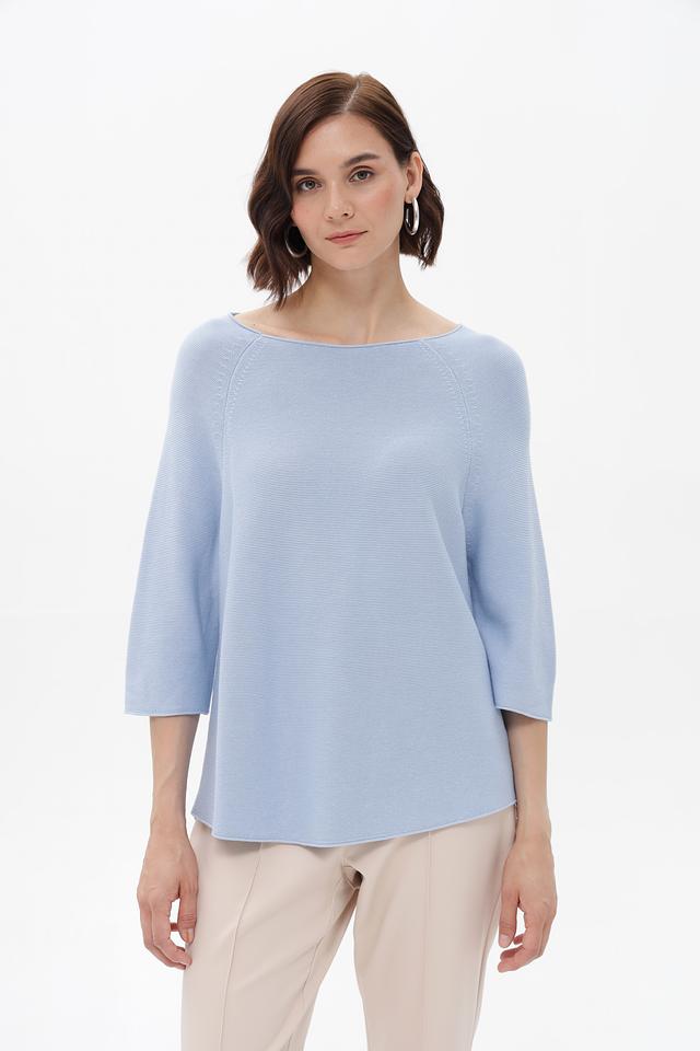 Женский пуловер Oui нежного голубого цвета с рукавом 3/4 и округлым вырезом. Изготовлен из мягкого и приятного к телу сочетания вискозы и хлопка, обеспечивающего комфорт в носке. Состав: вискоза 50%, хлопок 50%