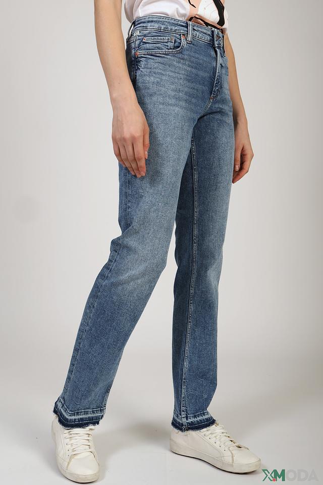 Джинсы имеют прямой крой, который обеспечивает комфортную посадку по фигуре. Зауженный книзу силуэт визуально удлиняет ноги и делает образ более современным. Высокая посадка подчеркивает талию.