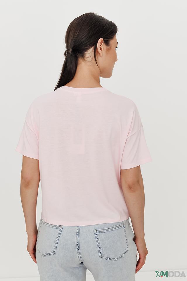 Женская футболка QS нежно-розового цвета с оригинальным принтом в виде сердца и надписью "ORIGINAL OPTIMISM". Модель выполнена из мягкого хлопка с модалом, обеспечивающего комфорт и приятные ощущения при носке. Состав: хлопок 50%, модал 50%