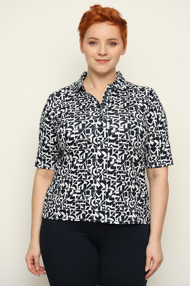 Блуза Rabe collection чёрно-белого цвета с оригинальным геометрическим принтом. Модель выполнена из 100% хлопка, что обеспечивает комфорт в носке. Удобный крой и воротник-стойка делают эту блузу отличным выбором для создания стильного образа. Состав: хлопок 100%