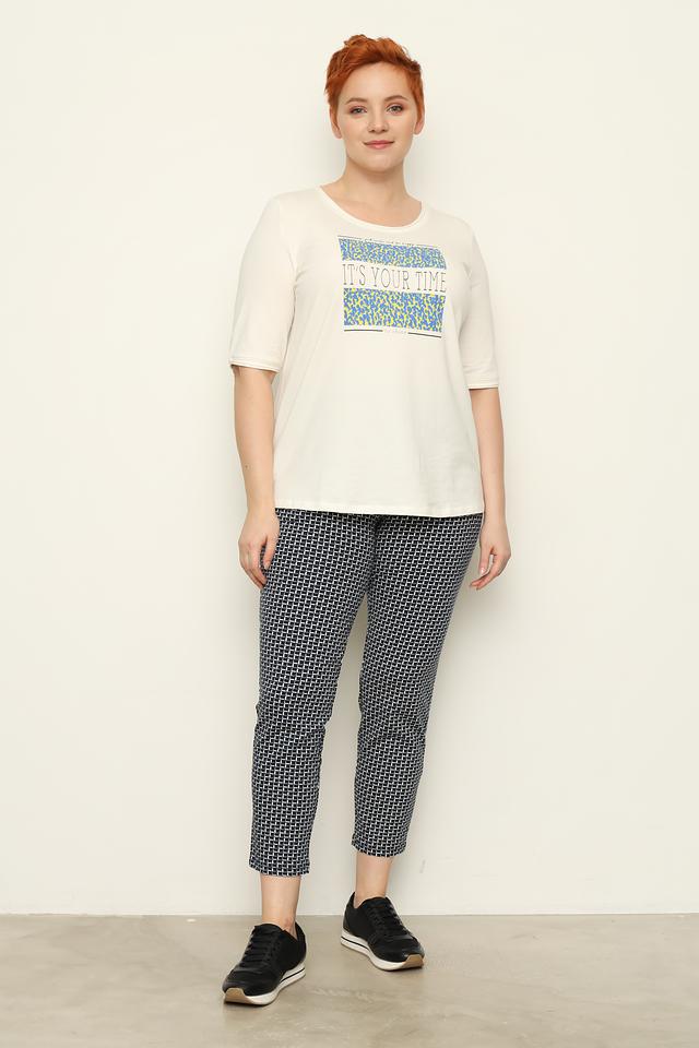 Брюки Rabe collection темно-синего цвета с геометрическим принтом – стильное и комфортное решение для повседневного гардероба. Модель выполнена из мягкой ткани с добавлением вискозы и эластана, обеспечивающих удобную посадку и свободу движений. Состав: хлопок 66%, вискоза 30%, эластан 4%