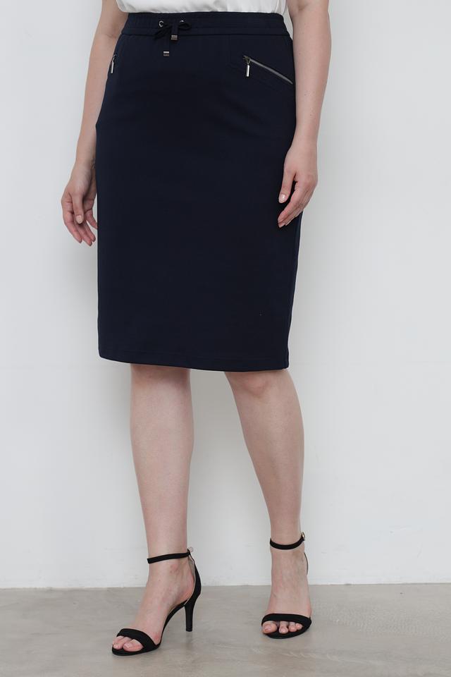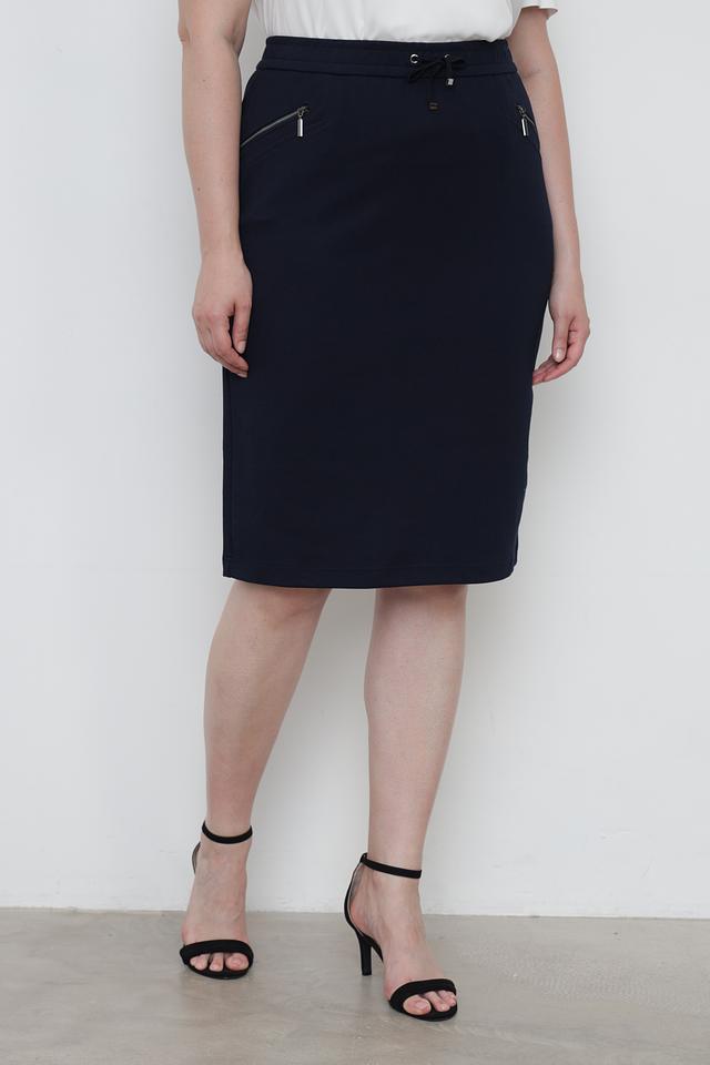 Юбка имеет прямой крой, который подчеркивает фигуру, не сковывая движений. Наличие функциональных карманов и декоративных молний добавляет практичности и стиля. Эластичный пояс с кулиской обеспечивает комфортную посадку по талии.