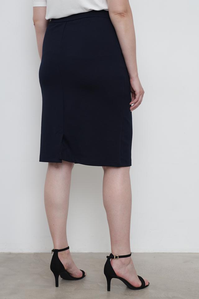 Состав ткани: 48% вискоза, 47% полиамид, 5% эластан. Вискоза придает юбке мягкость и приятные тактильные ощущения, полиамид обеспечивает износостойкость, а эластан – эластичность и хорошую посадку. Юбка проста в уходе и долго сохраняет свой первоначальный вид.