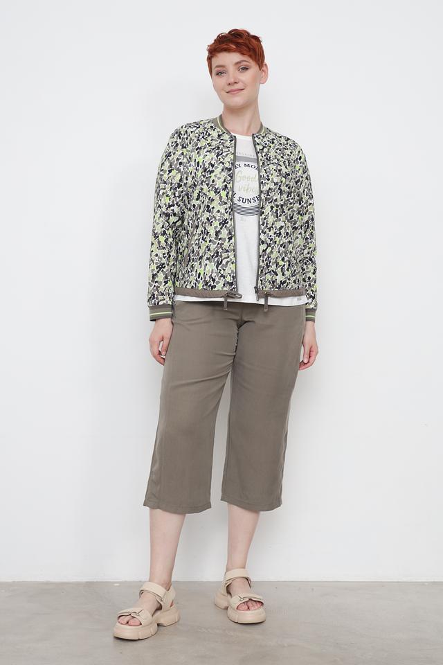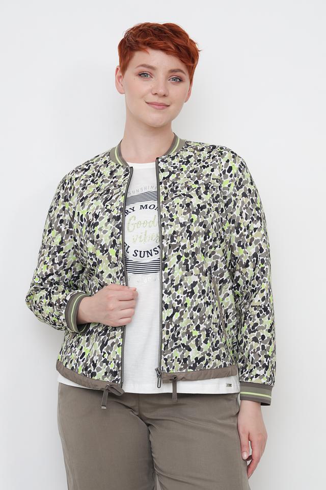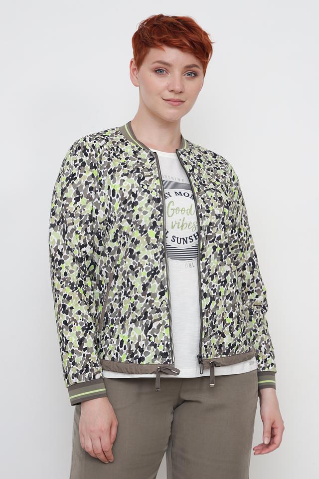 Жакет Rabe collection хаки с ярким цветочным принтом – стильное решение для создания повседневных образов. Модель выполнена из хлопка с добавлением полиэстера, имеет застежку-молнию и боковые карманы. Состав: хлопок 57%, полиэстер 43%