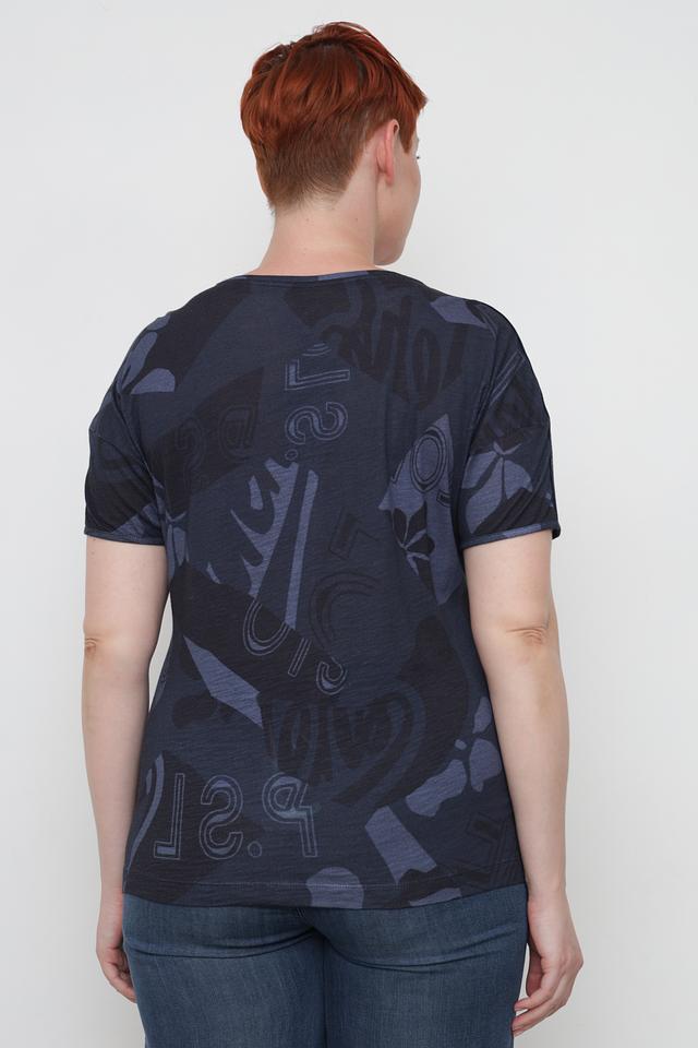 Женская футболка Rabe collection синего цвета с ярким абстрактным принтом. Модель выполнена из мягкого и приятного к телу сочетания вискозы и хлопка, обеспечивая комфорт в носке. Состав: вискоза 50%, хлопок 50%