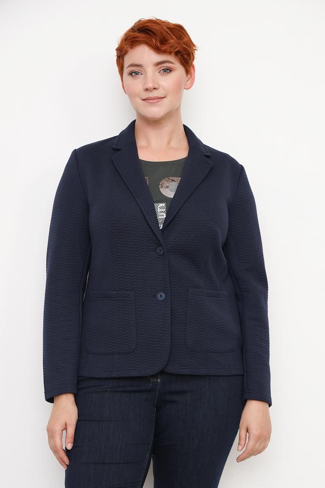 Жакет Rabe collection темно-синего цвета – стильная и удобная модель с классическим кроем. Жакет выполнен из текстурированной ткани, что придает ему особый шарм. Идеально дополнит ваш повседневный или деловой гардероб. Состав: полиэстер 98%, эластан 2%