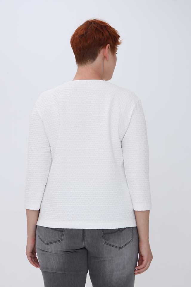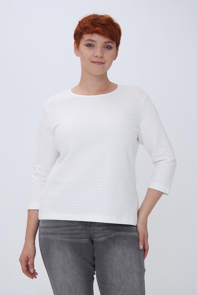 Белый пуловер от Rabe collection с объёмной текстурой – это стильное и комфортное решение для повседневного гардероба. Модель имеет округлый вырез горловины и рукава 3/4, что делает её универсальной для создания различных образов. Состав: хлопок 60%, полиэстер 37%, эластан 3%