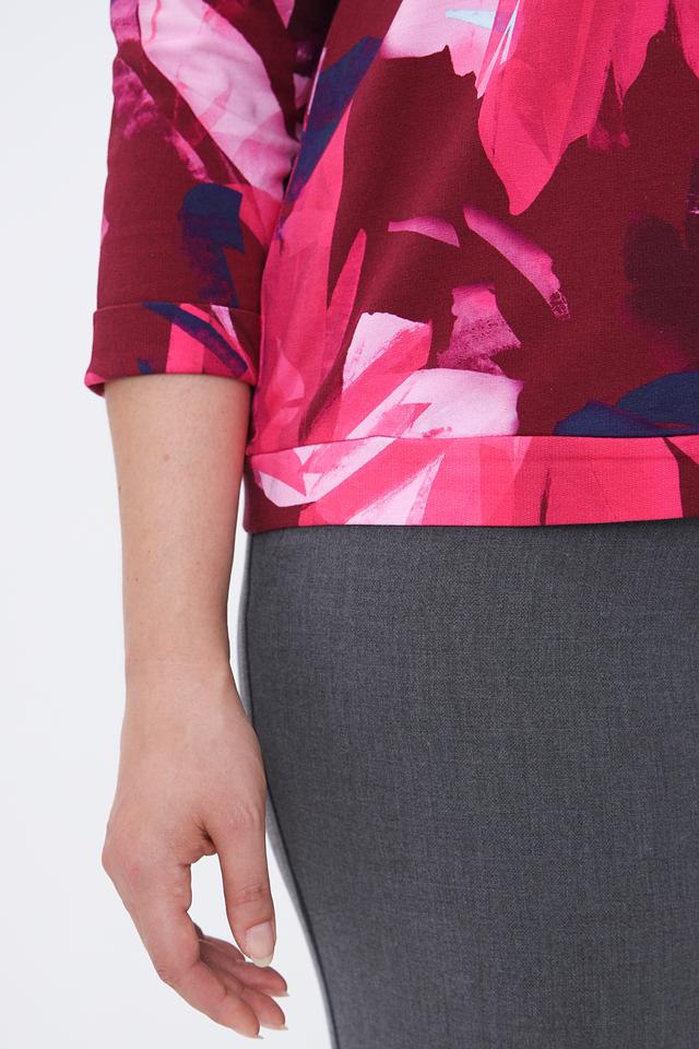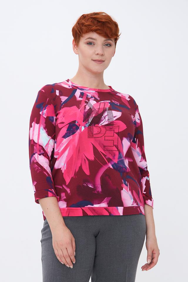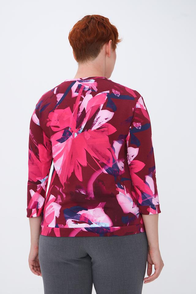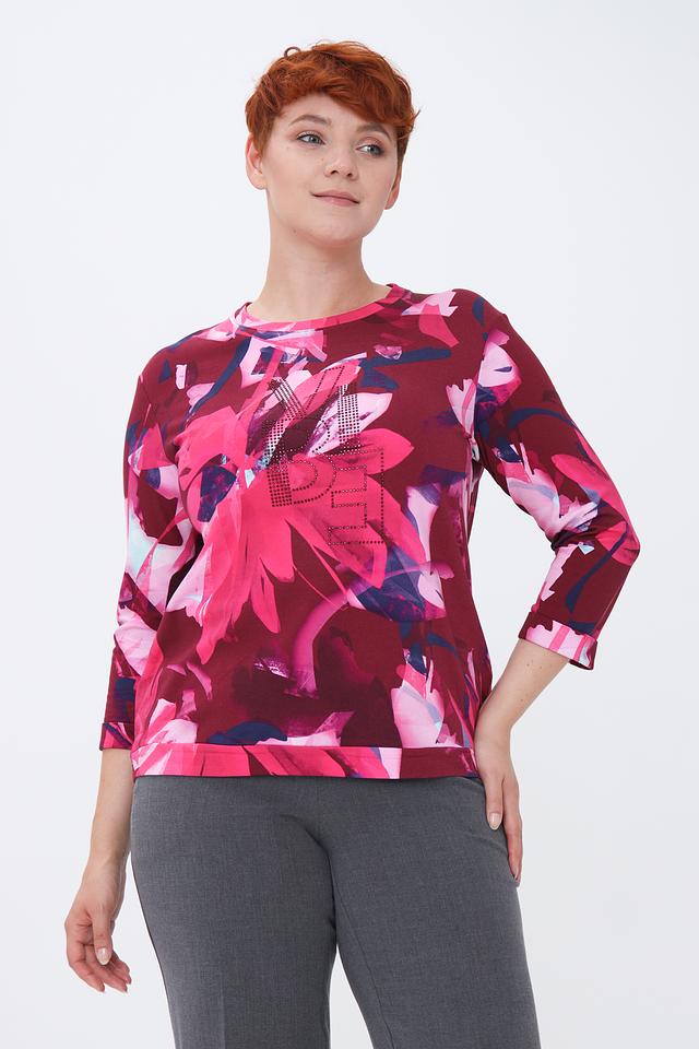 Женский пуловер Rabe collection бордового цвета с ярким цветочным принтом и рукавом 3/4 станет стильным дополнением к вашему гардеробу. Модель выполнена из мягкого и приятного к телу трикотажа, обеспечивающего комфорт в носке. Состав: хлопок 47%, модал 47%, эластан 6%