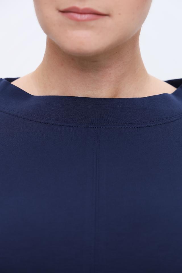 Это платье от Rabe collection выполнено в классическом темно-синем цвете, который легко сочетается с различными аксессуарами и обувью. Модель имеет прямой силуэт, который подчеркивает достоинства фигуры и обеспечивает свободу движений.