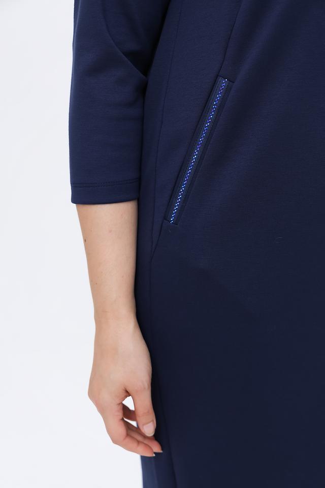 Темно-синее платье от Rabe collection – это элегантная и комфортная модель прямого кроя с рукавом 3/4. Платье выполнено из приятной к телу ткани, сочетающей в себе полиэстер, вискозу и эластан, что обеспечивает удобную посадку и легкость в уходе. Состав: полиэстер 50%, вискоза 44%, эластан 6%