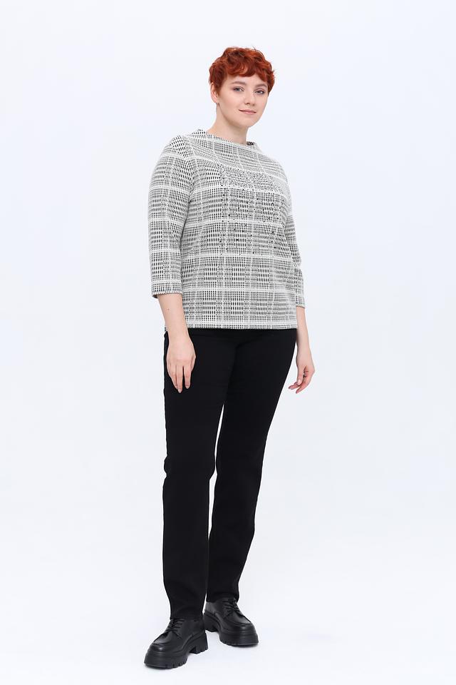 Модель имеет удобный крой с рукавом 3/4 и округлым вырезом горловины. Пуловер хорошо сочетается с брюками, джинсами и юбками, позволяя создавать разнообразные комплекты.