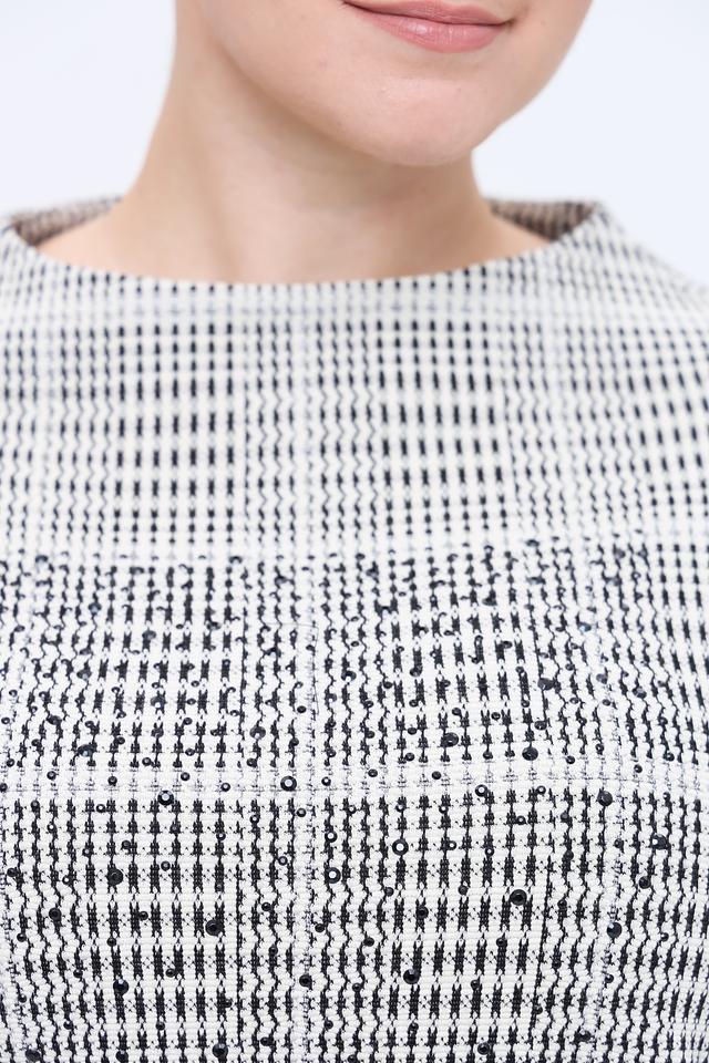 Этот пуловер от Rabe collection – идеальный выбор для создания комфортного и стильного образа. Пуловер выполнен в белом цвете с выразительным клетчатым рисунком, который придает ему особый шарм.
