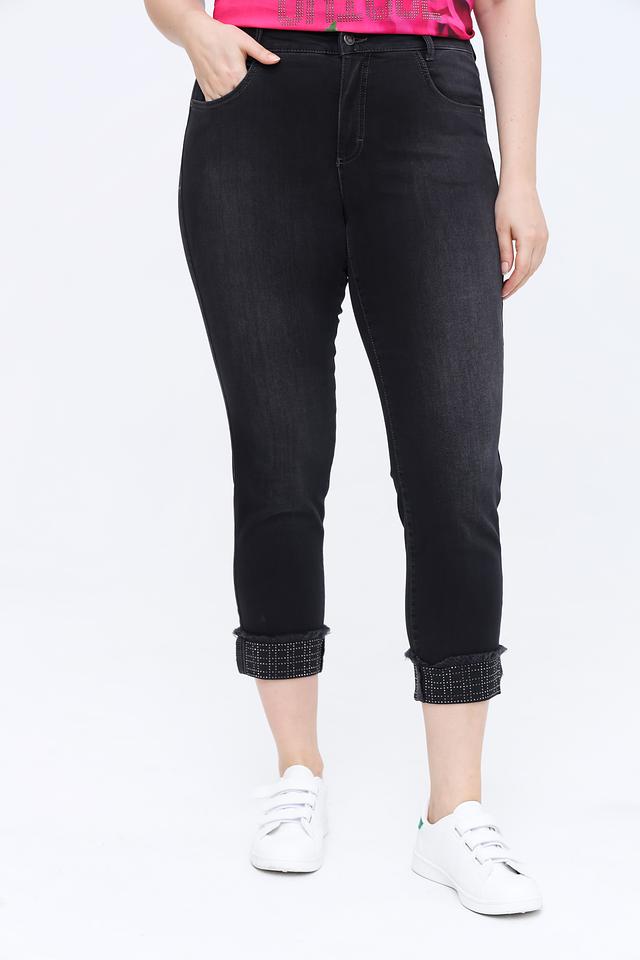 Джинсы имеют укороченный крой, что делает их идеальным выбором для создания модных и стильных образов. Оригинальный декор на манжетах добавляет изюминку и привлекает внимание.