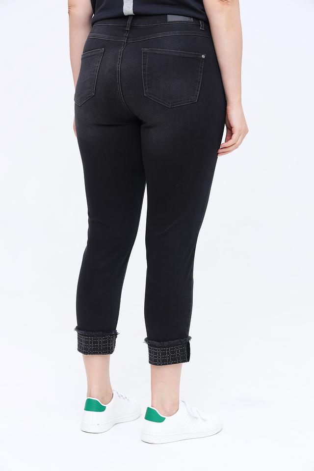 Стильные джинсы Rabe collection чёрного цвета с укороченным силуэтом и оригинальным декором на манжетах. Модель выполнена из качественного хлопка с добавлением полиэстера и эластана для комфорта и лучшей посадки. Состав: хлопок 92%, полиэстер 6%, эластан 2%