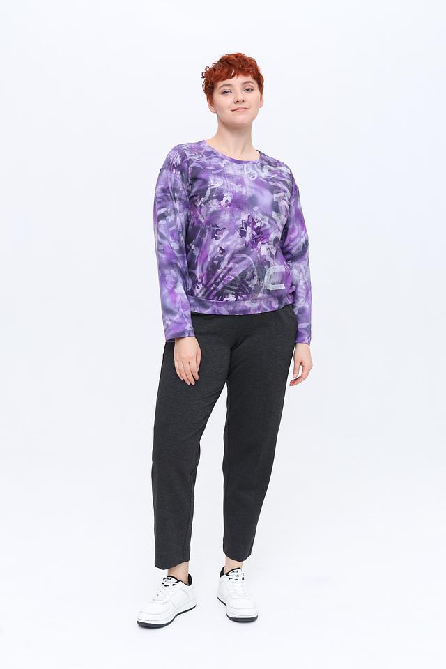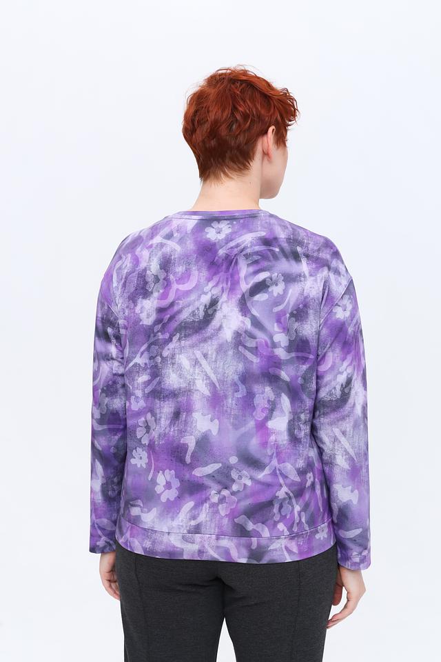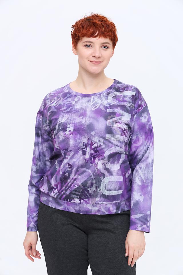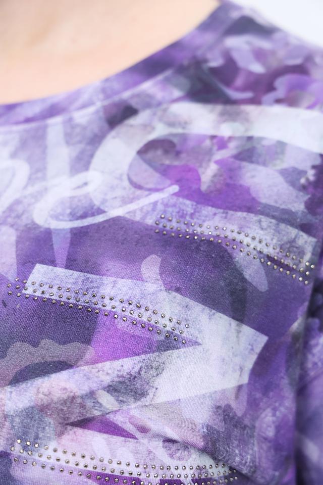 Женский лонгслив Rabe collection фиолетового цвета с оригинальным цветочным принтом и декоративной отделкой стразами. Изготовлен из мягкого и приятного к телу трикотажа, обеспечивающего комфорт в носке. Состав: хлопок 60%, вискоза 35%, эластан 5%