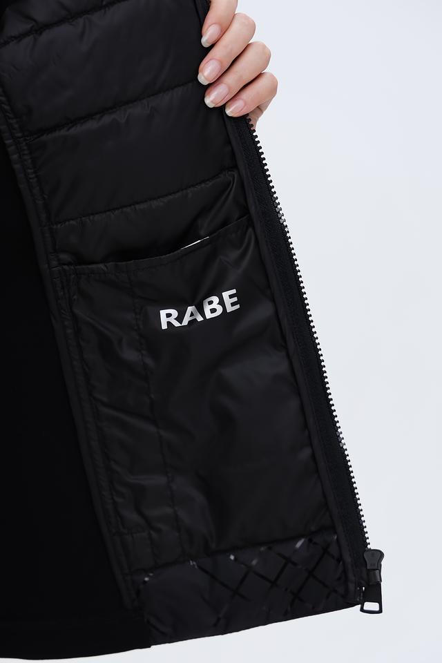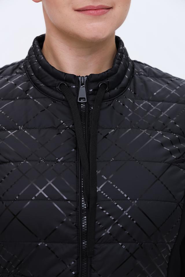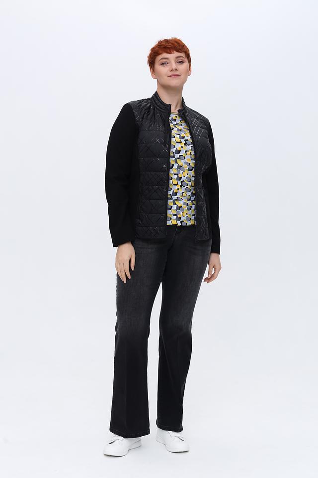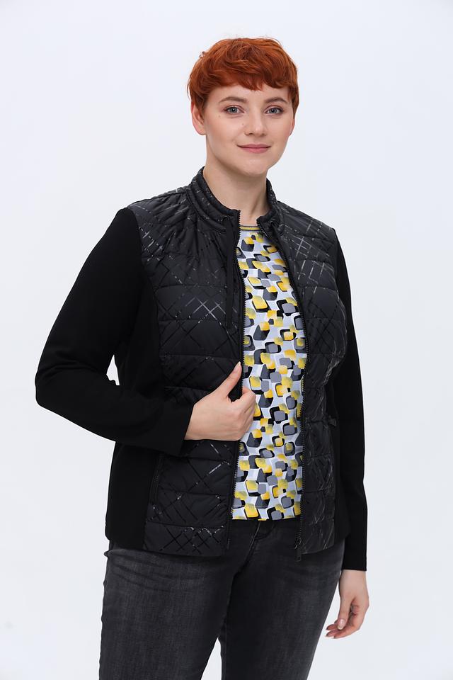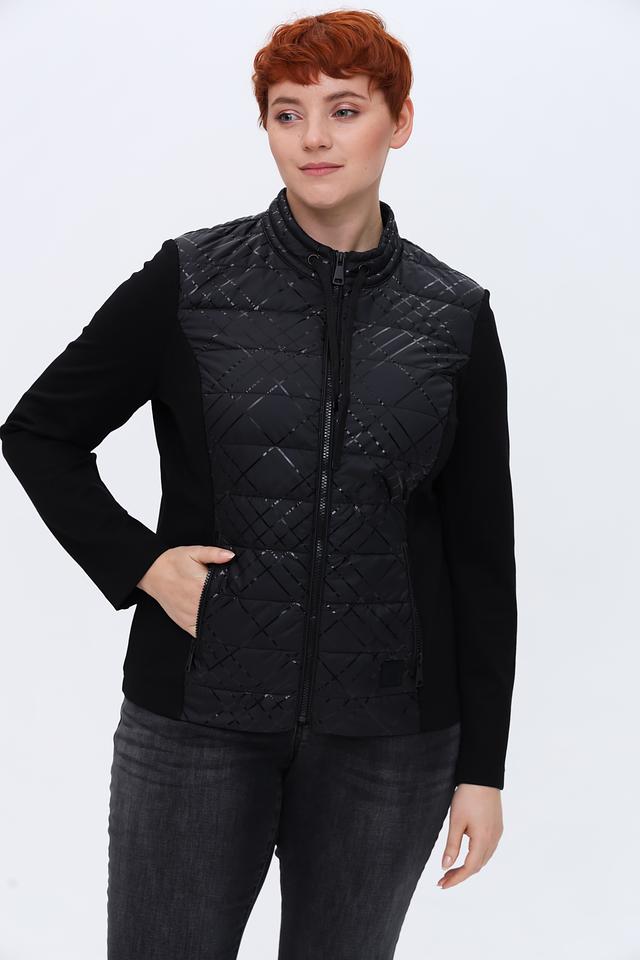 Стильный жакет Rabe collection черного цвета с комбинированным дизайном. Модель выполнена из гладкой ткани и стеганого материала, что придает ей оригинальность и практичность. Жакет застегивается на молнию. Состав: Состав_подкладка полиэстер 100%, вискоза 60%, полиамид 35%, эластан 5%