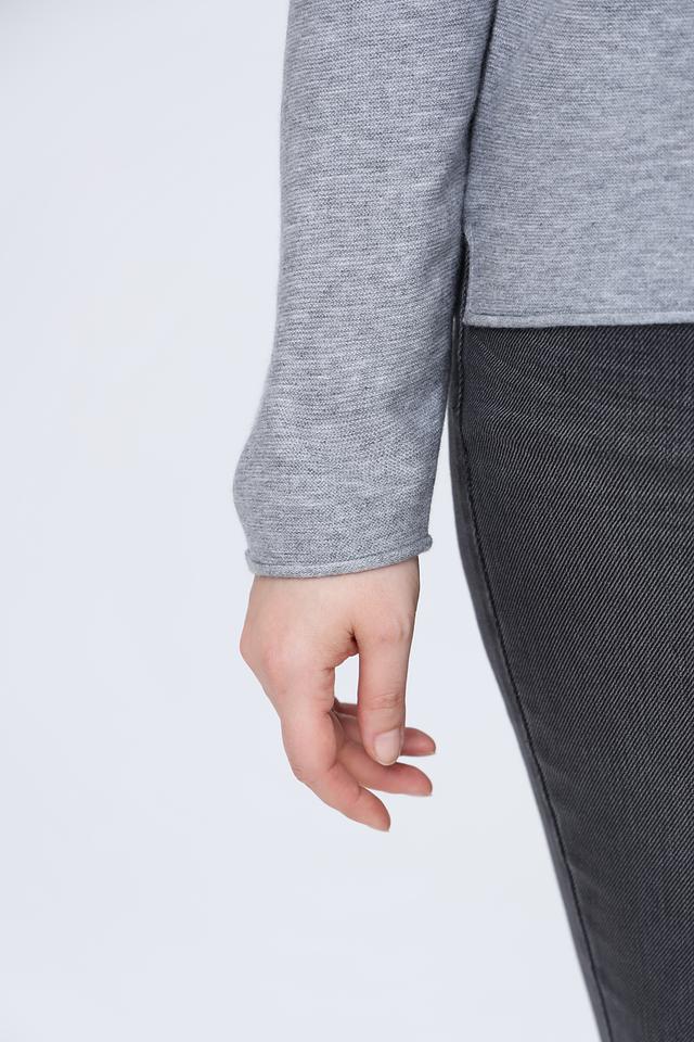 Этот пуловер от Rabe collection выполнен в сером цвете и станет отличным дополнением к вашему гардеробу. Модель имеет прямой крой и удобную длину. Воротник-стойка дополнен кулиской с металлическими наконечниками, что придает изделию оригинальность.