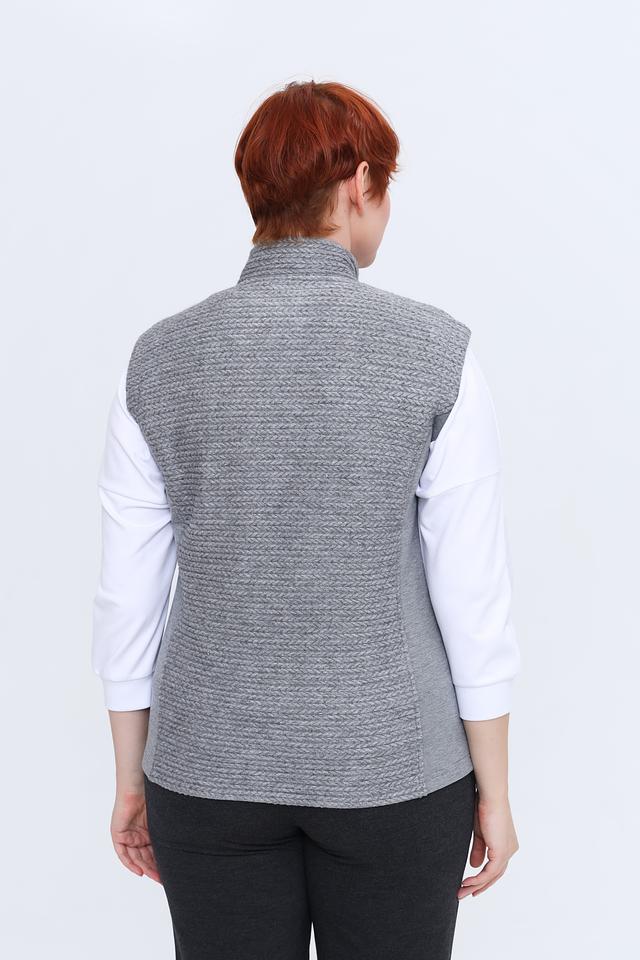 Серый жилет Rabe collection выполнен из фактурного трикотажа с небольшим воротником-стойкой и молнией. Удобный и практичный вариант для создания многослойных образов. Состав: вискоза 45%, полиамид 33%, полиэстер 22%