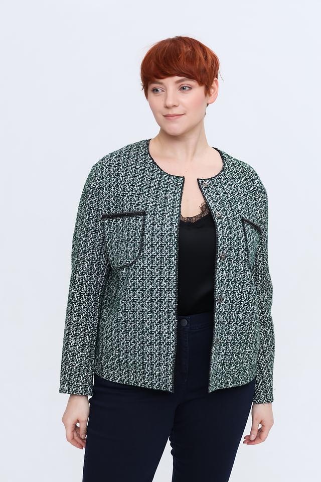 Этот жакет от Rabe collection станет прекрасным дополнением к вашему гардеробу. Жакет выполнен в зеленой цветовой гамме с оригинальным клетчатым принтом, который придает ему особый шарм.