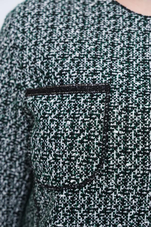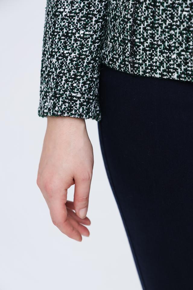 Жакет изготовлен из смеси полиакрила, хлопка и полиэстера (65%, 25%, 10% соответственно), что обеспечивает комфорт и практичность в уходе. Этот жакет идеально подойдет для создания как повседневных, так и более формальных образов.