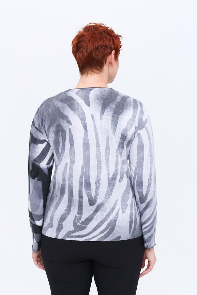 Этот пуловер от Rabe collection выполнен в серой цветовой гамме с эффектным абстрактным принтом. Модель имеет свободный крой и длинные рукава, что делает ее универсальной для создания различных образов.