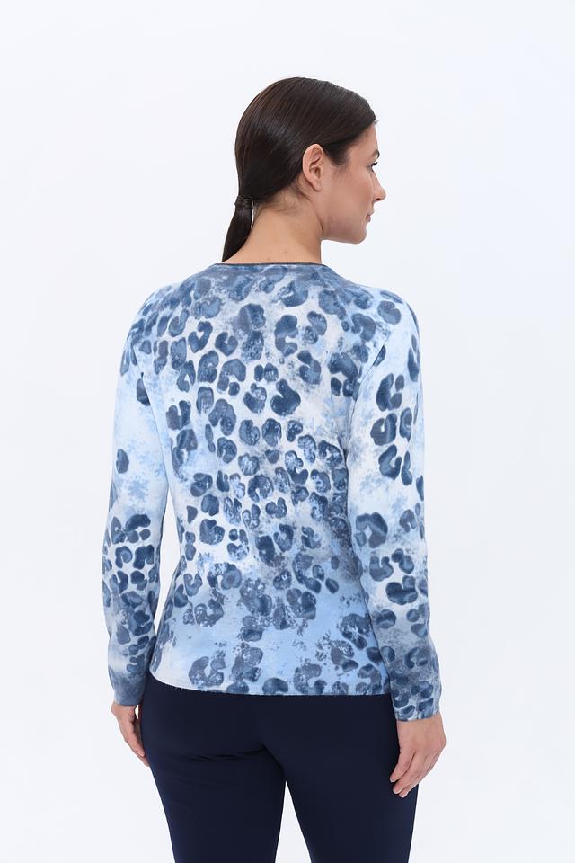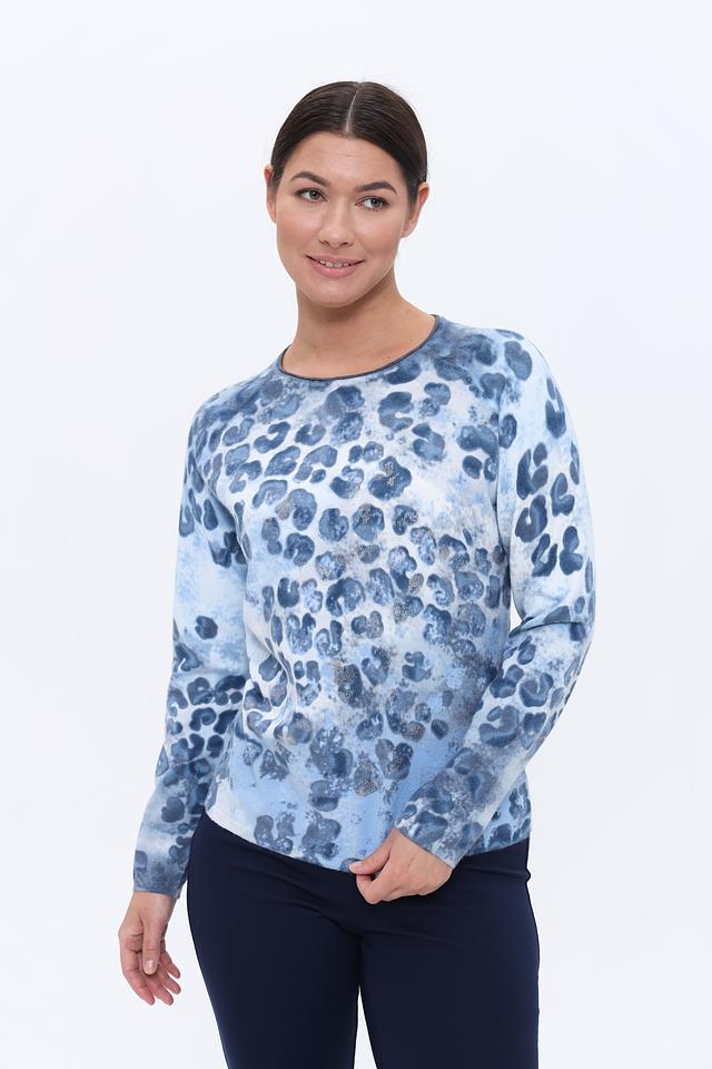 Женский пуловер Rabe collection голубого цвета с оригинальным леопардовым принтом станет стильным дополнением к вашему гардеробу. Модель выполнена из мягкого и приятного к телу трикотажа, обеспечивающего комфорт в носке. Состав: вискоза 50%, полиамид 28%, полиэстер 22%