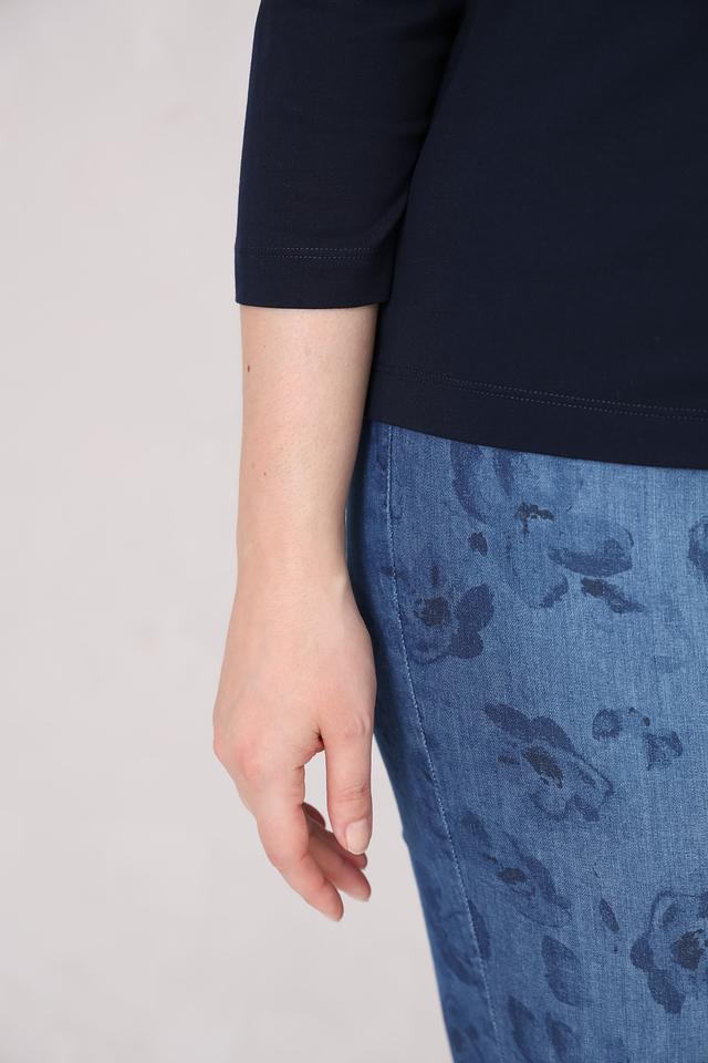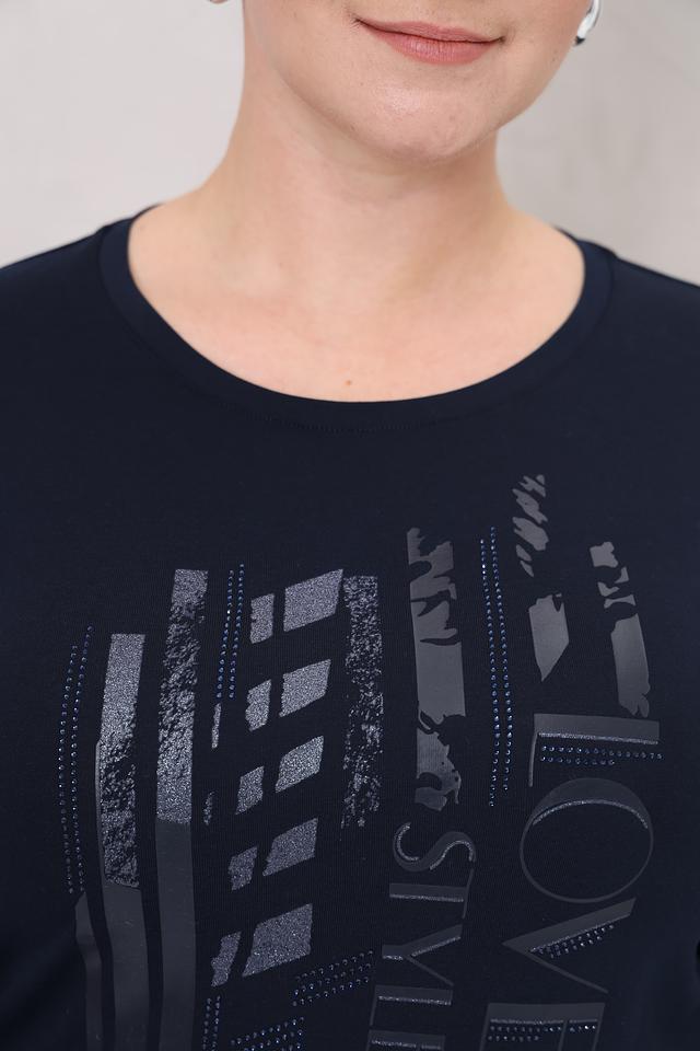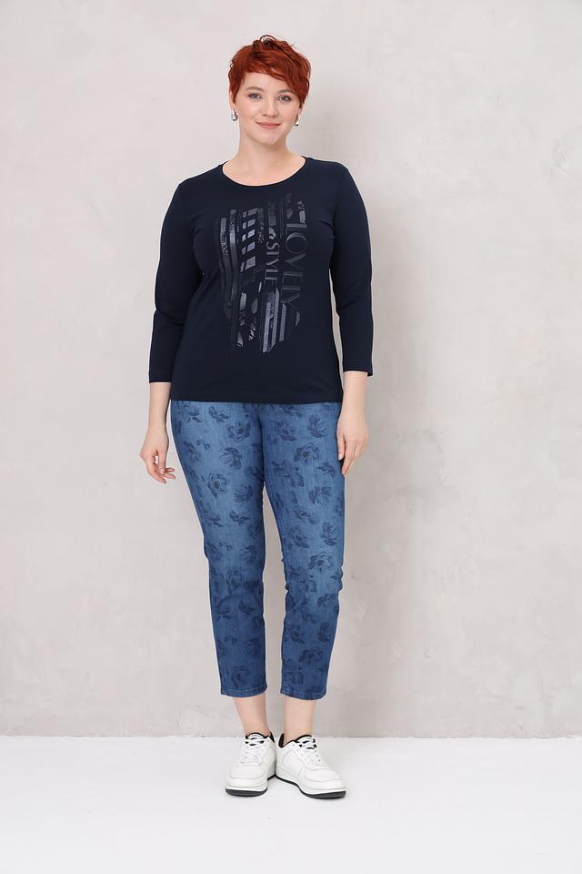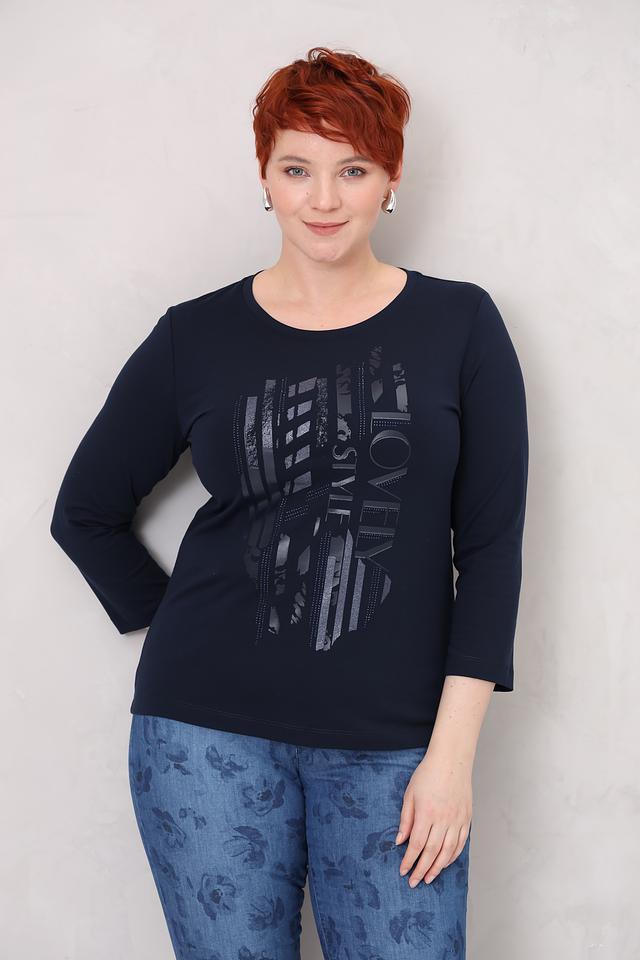 Женский лонгслив Rabe collection темно-синего цвета с оригинальным принтом "LOVELY STYLE". Модель выполнена из мягкого хлопка с добавлением эластана, обеспечивающего комфортную посадку по фигуре. Состав: хлопок 92%, эластан 8%
