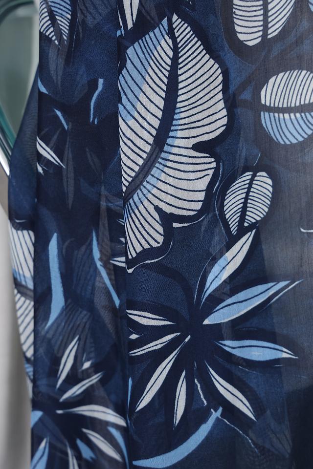 Этот шарф от Rabe collection – идеальный аксессуар для создания завершенного образа. Шарф выполнен в синих тонах и украшен стилизованным принтом с изображением листьев.