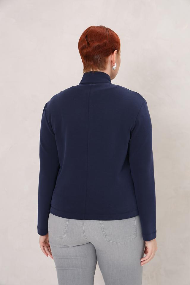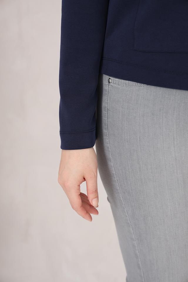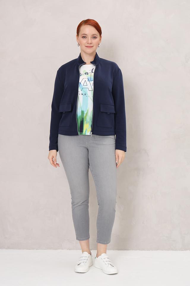 Синий жакет от Rabe collection – стильная и удобная модель на молнии с карманами. Жакет выполнен из мягкой ткани с добавлением модала, полиэстера и эластана, обеспечивающих комфорт и хорошую посадку по фигуре. Состав: модал 48%, полиэстер 47%, эластан 5%