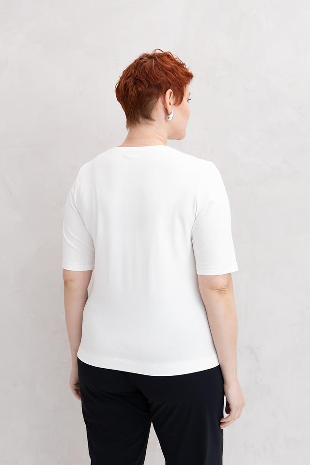 Эта белая футболка от Rabe collection станет отличным дополнением к вашему гардеробу. Она выполнена из высококачественного хлопка (92%) с добавлением эластана (8%), что обеспечивает комфорт в носке и хорошую посадку по фигуре.