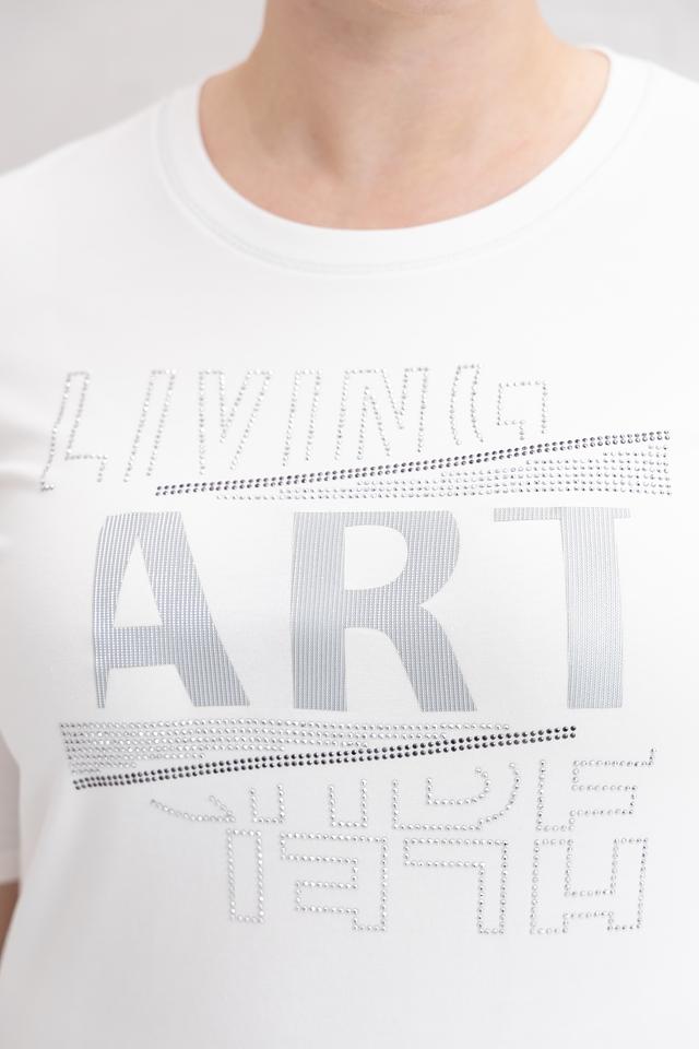 Белая футболка от Rabe collection с оригинальным принтом "ART" — стильное и комфортное решение для повседневного образа. Изготовлена из мягкого хлопка с добавлением эластана для удобной посадки. Состав: хлопок 92%, эластан 8%