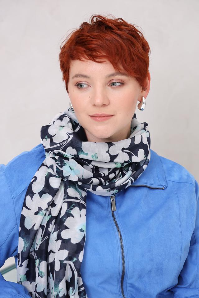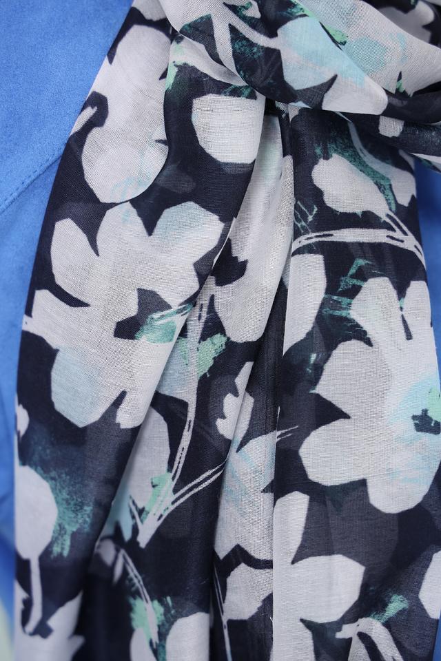 Этот шарф от Rabe collection – идеальный аксессуар для создания завершенного образа. Шарф выполнен в синей цветовой гамме и украшен ярким цветочным принтом, который добавляет изделию легкости и свежести.