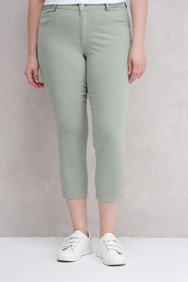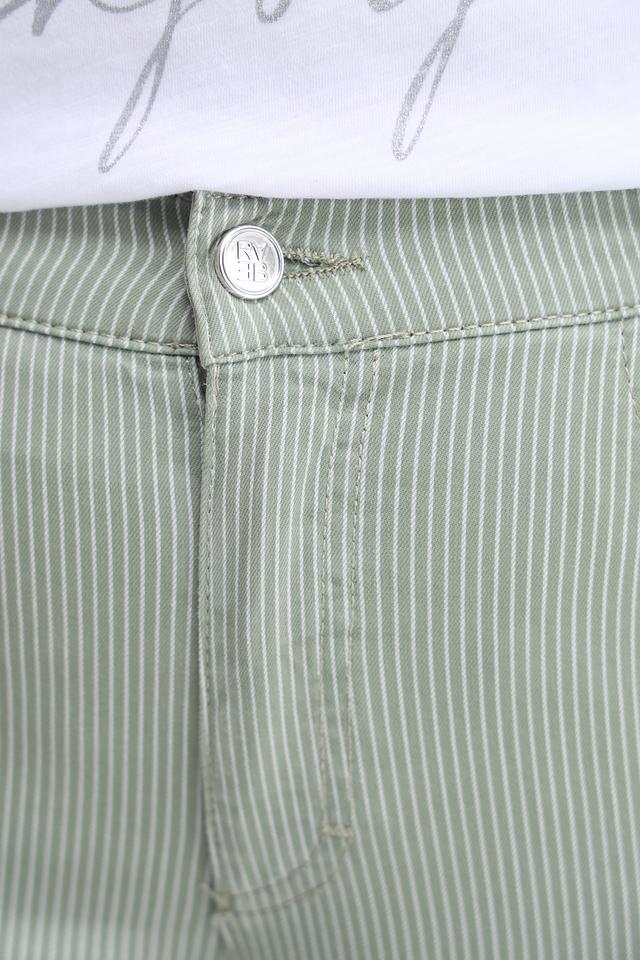 Женские брюки кюлоты Rabe collection зеленого цвета с вертикальной полоской – удобная и стильная модель для повседневной носки. Изготовлены из хлопка с добавлением полиэстера и эластана, обеспечивающих комфорт и хорошую посадку. Состав: хлопок 74%, полиэстер 23%, эластан 3%