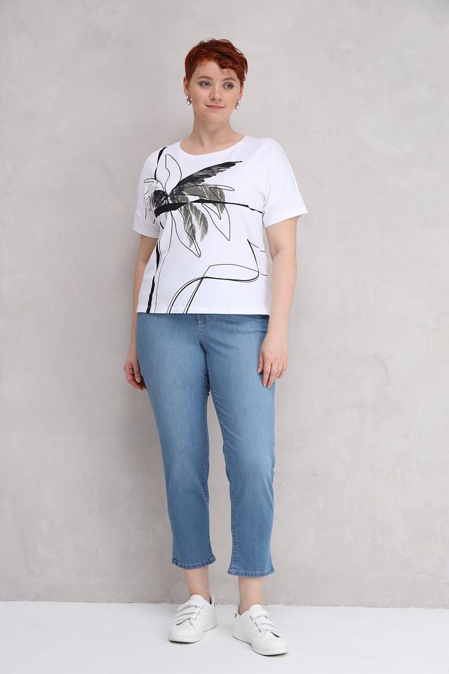 Белая футболка Rabe collection с оригинальным принтом в виде листьев — стильное и комфортное решение для повседневного образа. Изготовлена из мягкого и приятного к телу сочетания хлопка, модала и эластана. Состав: хлопок 48%, модал 48%, эластан 4%
