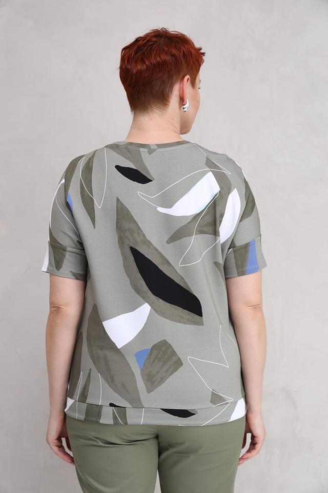 Женская футболка Rabe collection хаки с оригинальным камуфляжным принтом и надписью. Модель выполнена из мягкого и приятного к телу трикотажа, обеспечивающего комфорт в течение дня. Стильный и современный выбор для повседневного образа. Состав: хлопок 47%, модал 47%, эластан 6%