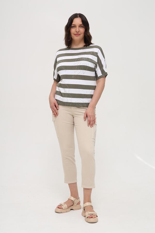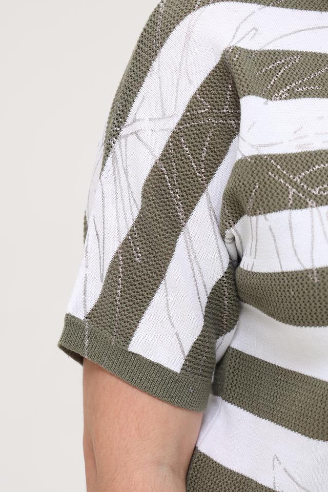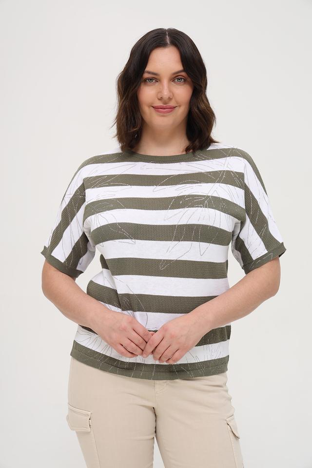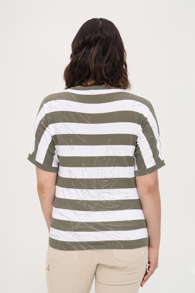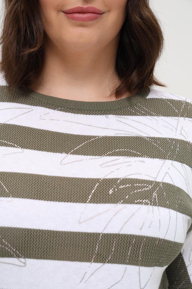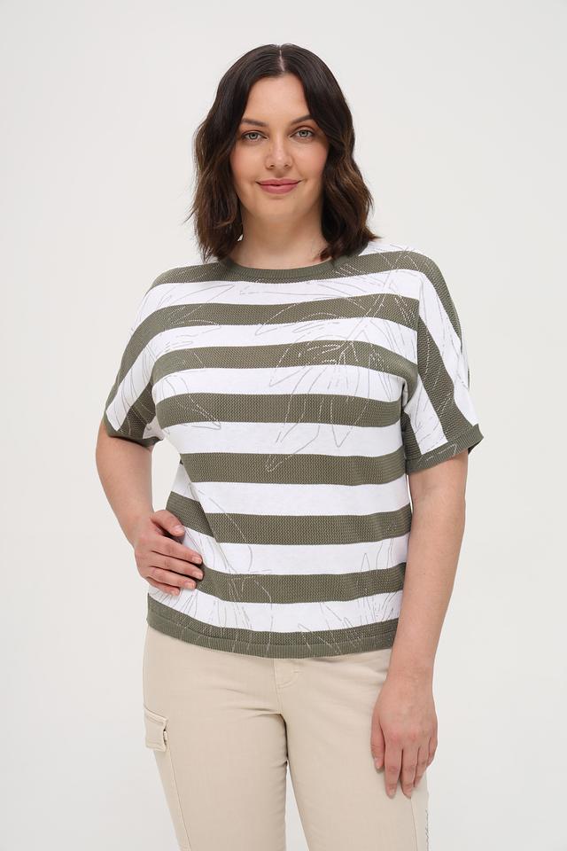 Женский пуловер Rabe collection оливково-белого цвета с коротким рукавом и полосатым принтом. Изготовлен из мягкого хлопка, обеспечивающего комфорт в носке. Стильный и удобный выбор для повседневного гардероба. Состав: хлопок 100%