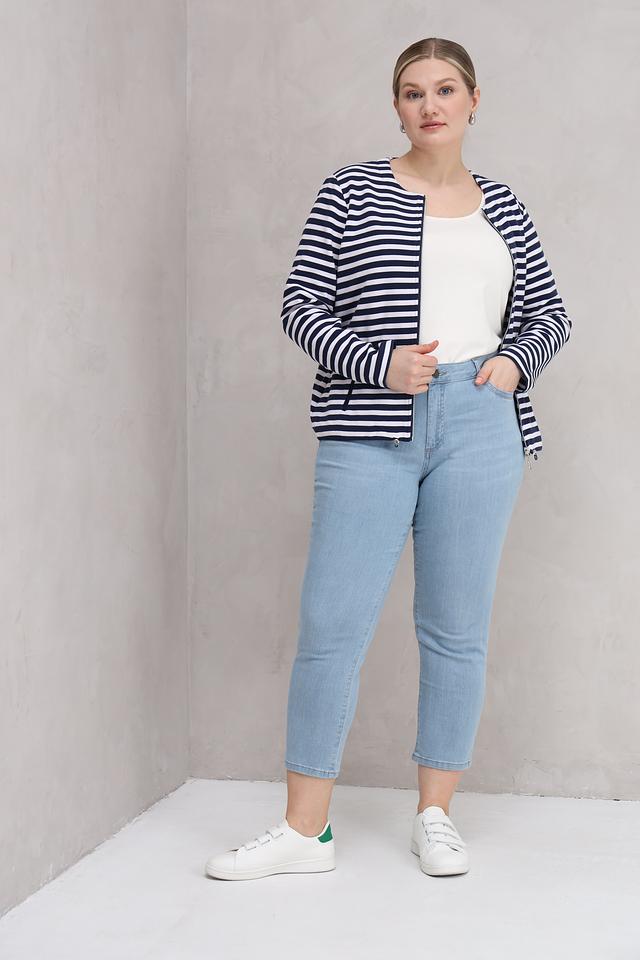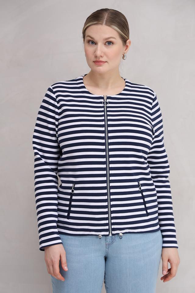 Жакет Rabe collection сине-белого цвета – стильная и удобная модель на молнии. Жакет имеет полосатый принт и дополнен функциональными карманами на молнии, что делает его практичным и современным. Состав: хлопок 80%, полиэстер 15%, эластан 5%