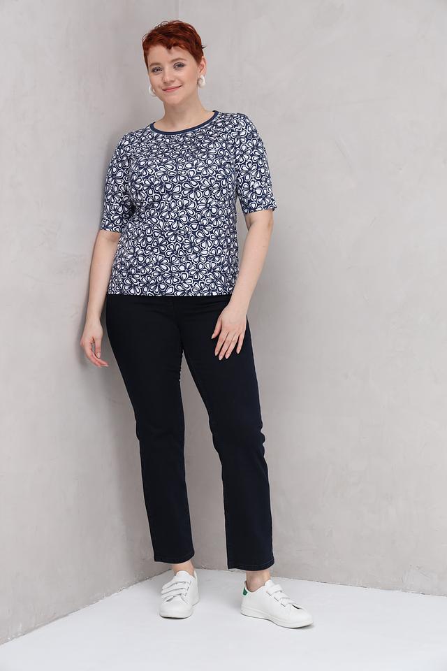 Тёмно-синие джинсы от Rabe collection — это удобная и стильная модель с классическим кроем. Прямые джинсы с завышенной талией идеально подойдут для создания повседневных образов и подчеркнут достоинства фигуры. Состав: хлопок 90%, полиэстер 8%, эластан 2%